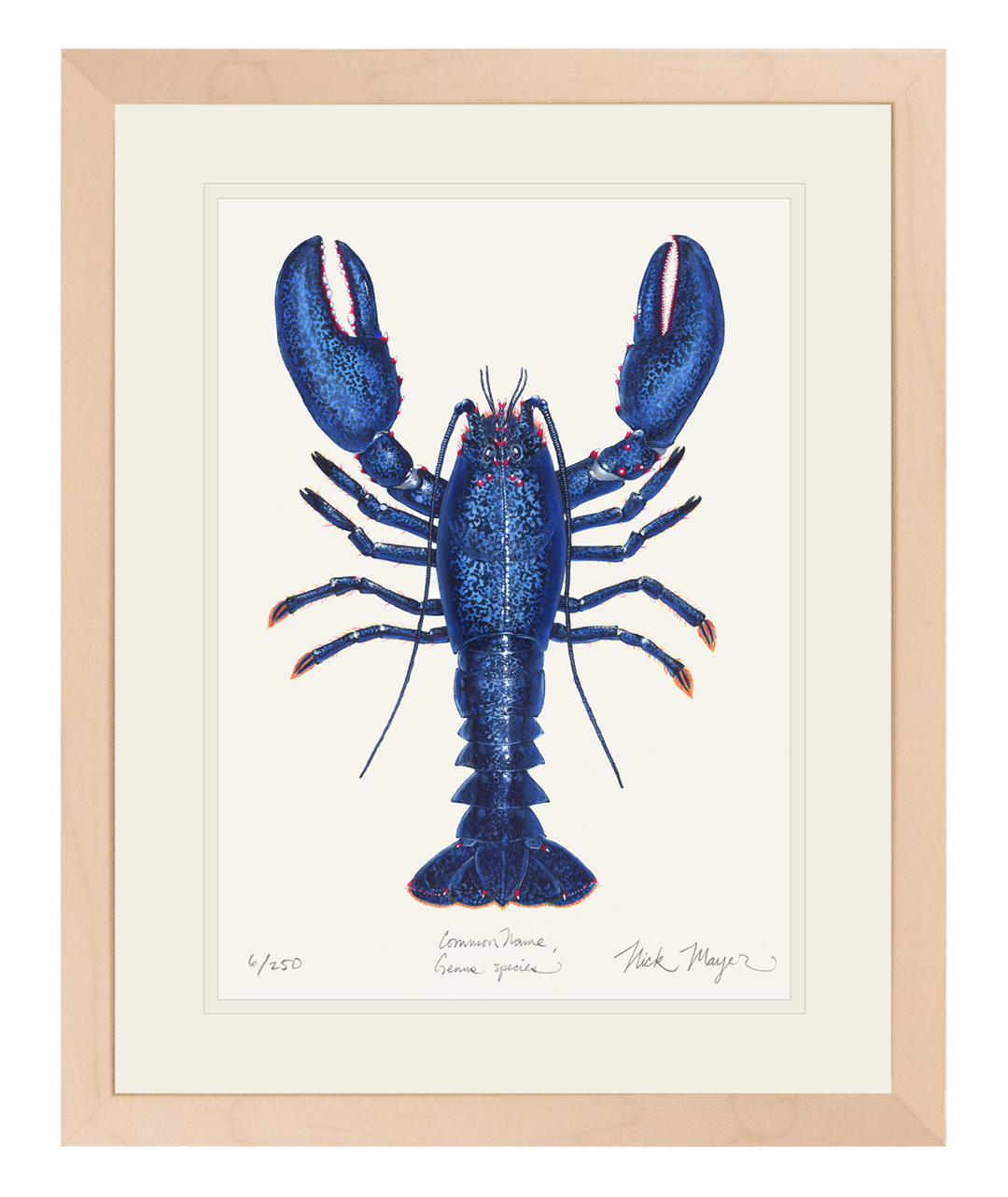 Blue Lobster II Limited Edition Print, Double Matted in Whitewashed Frame, 14" x 18" - READY TO SHIP