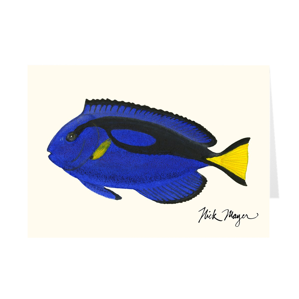 Yes, this is Dory, the fish popularized in Pixar's Finding Dory and Finding Nemo brought to life by the voice of Ellen DeGeneres. The Blue Tang is primarily an Indo Pacific species. These large 5" x 7" high quality art cards are printed on card stock, come pre-folded, packed in a clear sleeve per 10 cards, and include one white envelope for each card. Cards are blank inside for a personalized message. Printed on recycled paper.