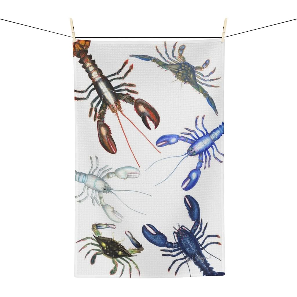 We have tested a ton of kitchen/ tea towels and while many passed the test when it came to quality printing, most were not soft or absorbent enough. These kitchen towels are vibrantly colored, soft to the touch, and are absorbent. So they are perfect to get the job done when it comes to cleaning and kitchen aesthetics. They are durable, yet soft to the touch and clean. Exclusive pattern created from my Lobster paintings.