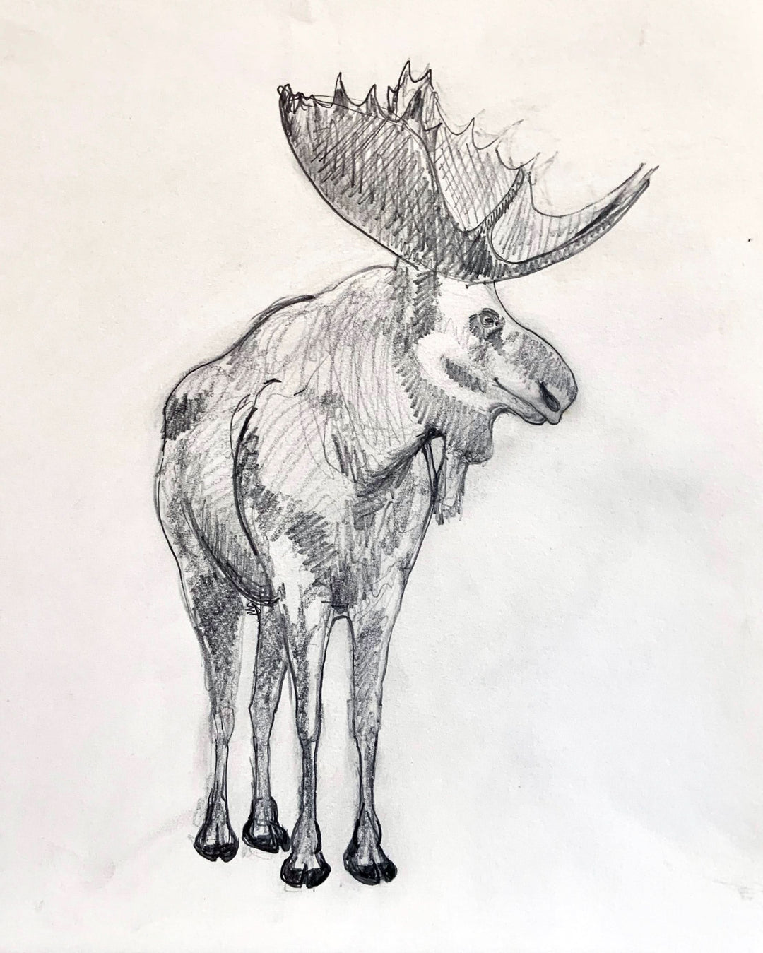 One of a kind original pencil drawing. I made this sketch inspired by hunting the forest floor around my house for shed antlers in the Spring. I found a massive matching set of shed Moose shed antlers a stone's throw from my house in Vermont.