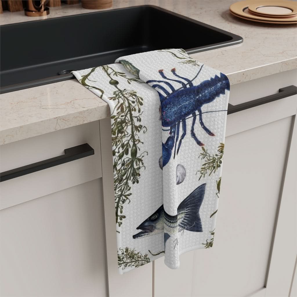 We have tested a ton of kitchen/ tea towels and while many passed the test when it came to quality printing, most were not soft or absorbent enough. These kitchen towels are vibrantly colored, soft to the touch, and are absorbent. So they are perfect to get the job done when it comes to cleaning and kitchen aesthetics. They are durable, yet soft to the touch and clean. Exclusive pattern created from my Blue Lobster II painting.