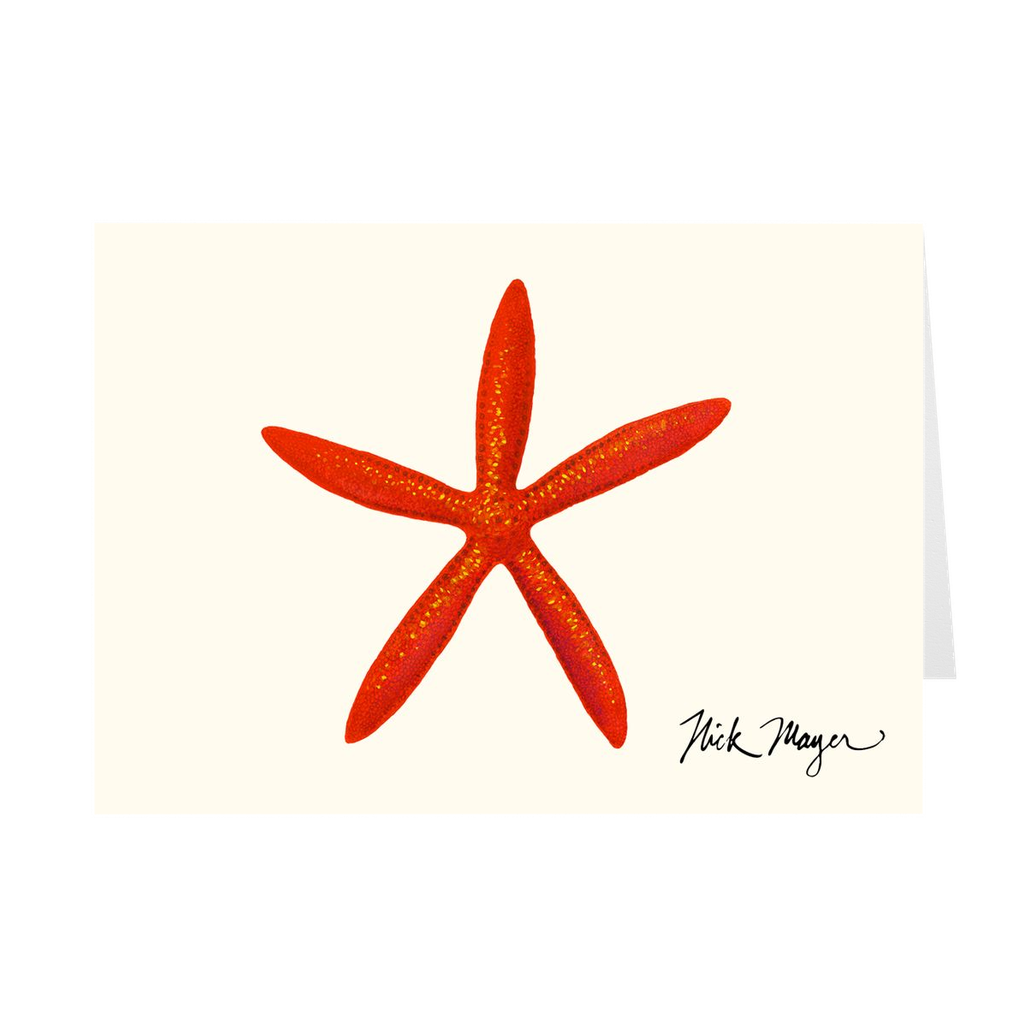 The Red Linckia is a brightly colored exotic starfish found in the Indian Ocean. Linckias are commonly red, blue, or purple. Despite their beautiful appearance they are carnivorous predators, feeding on clams and other molluscs. These large 5" x 7" high quality art cards are printed on card stock, come pre-folded, packed in a clear sleeve per 10 cards, and include one white envelope for each card. Cards are blank inside for a personalized message. Printed on recycled paper.