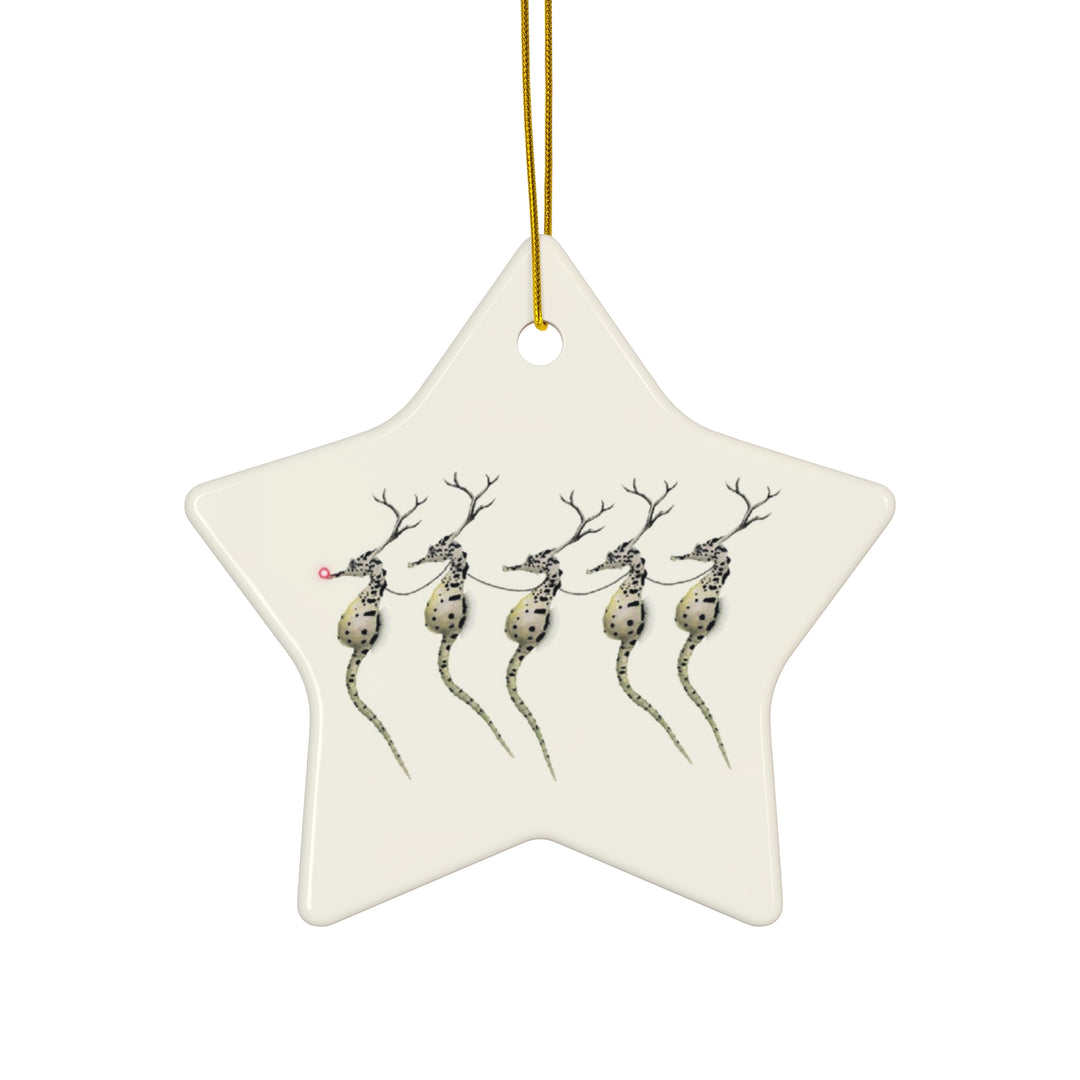 Santa's Seahorses Ceramic Ornament