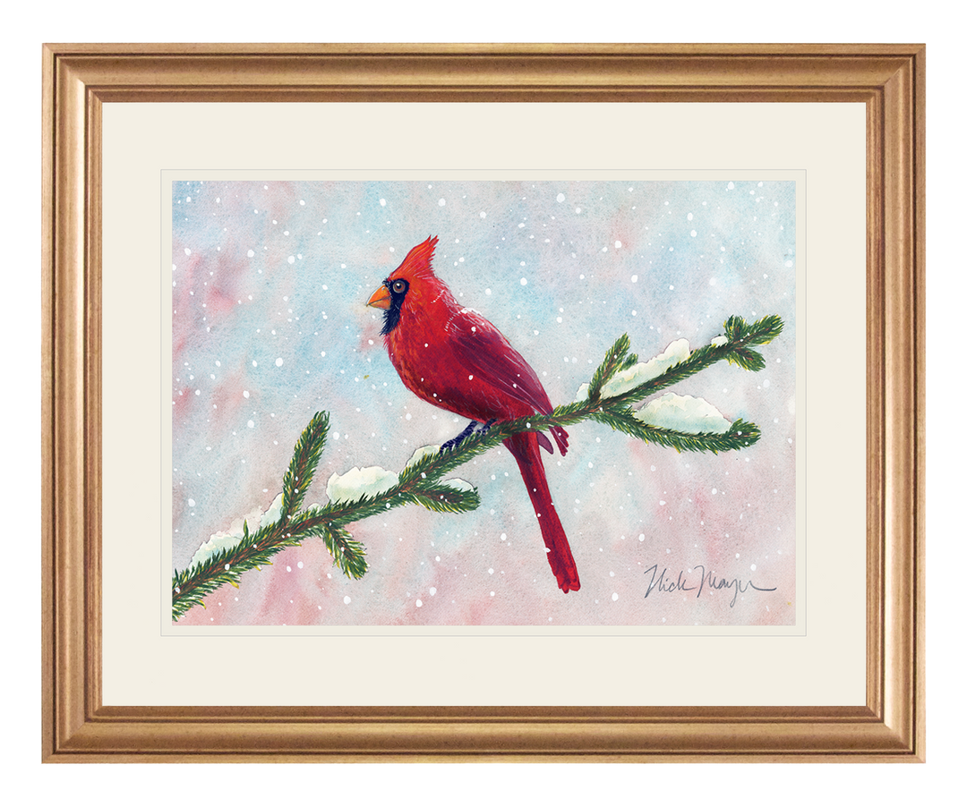 Celebrate this beautiful bird and the beauty of winter with this print. Works wonderfully as a holiday decoration!