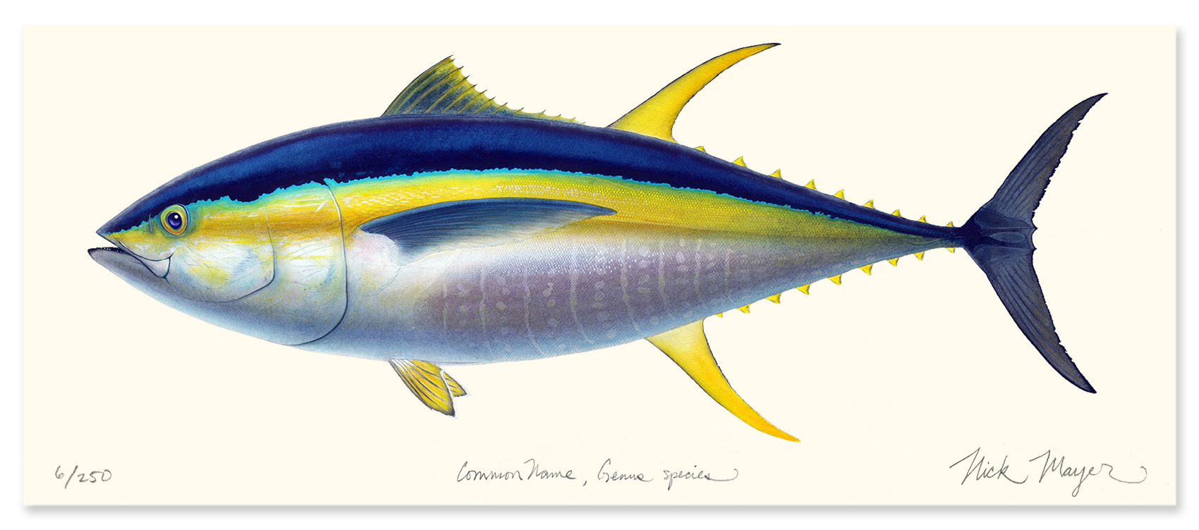 A prize Canyon catch, the Yellowfin can reach a weight of 1,000 lbs. This painting was made from an 80 pounder Nick caught in the Canyons off Montauk.